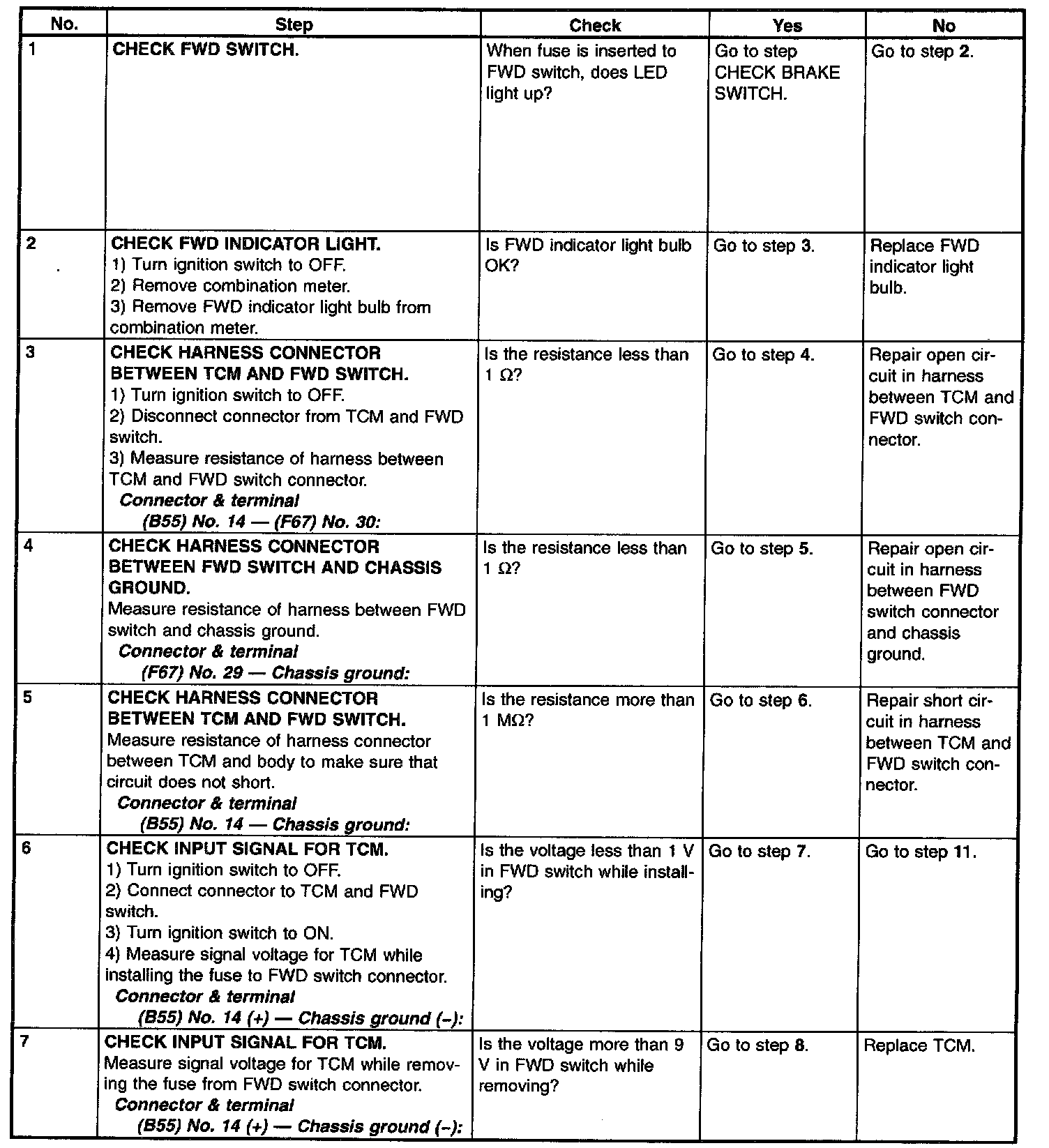 B: CHECK FWD SWITCH.