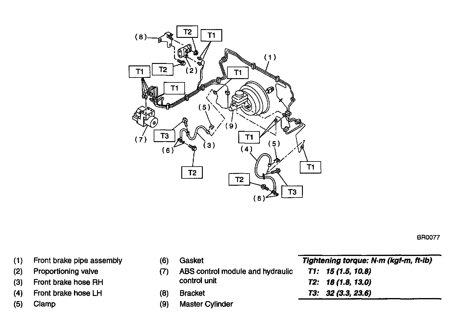 FRONT BRAKE PIPES AND HOSE