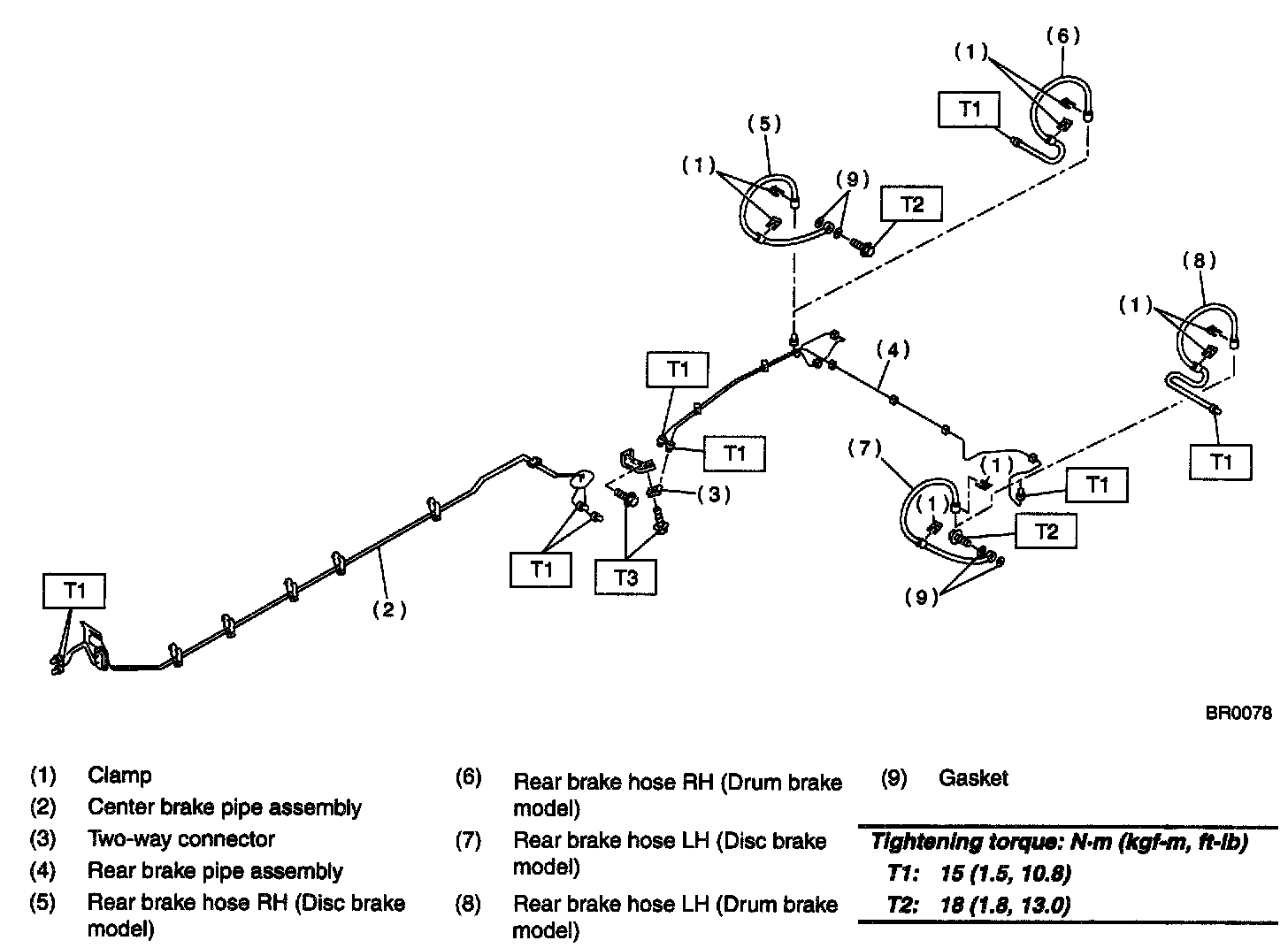 CENTER AND REAR BRAKE PIPES AND HOSE