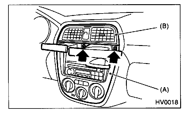 3. Loosen two screws to remove the center air vent grille (B).