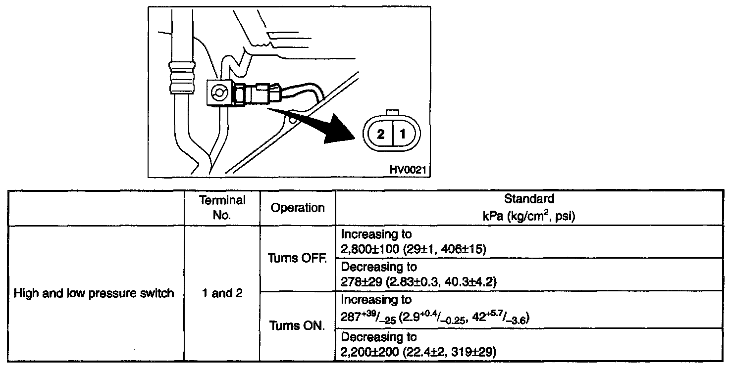 Refrigerant Pressure Sensor / Switch: Testing and Inspection