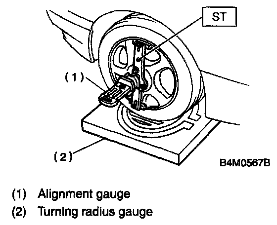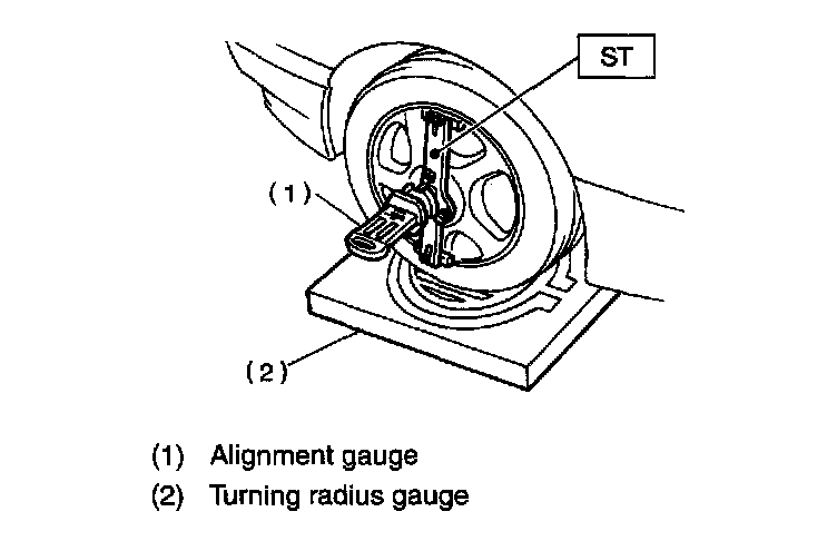2. Set the ST into the center of the wheel, and then install the wheel alignment gauge.