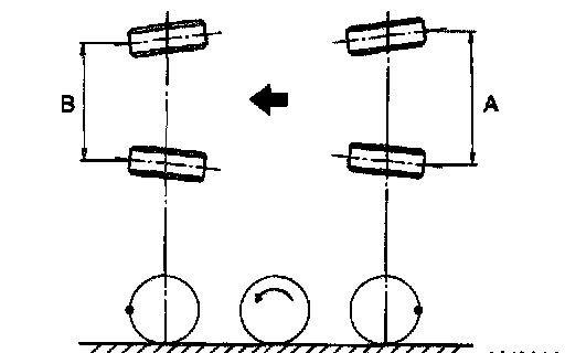 2. Mark the rear sides of left and right tires at height corresponding to the center of spindles and measure distance "A" between marks.
