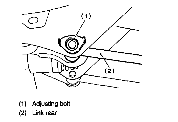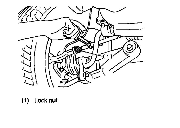 1. Make the thrust angle adjustments by turning toe-in adjusting bolts of rear suspension equally in the same direction.