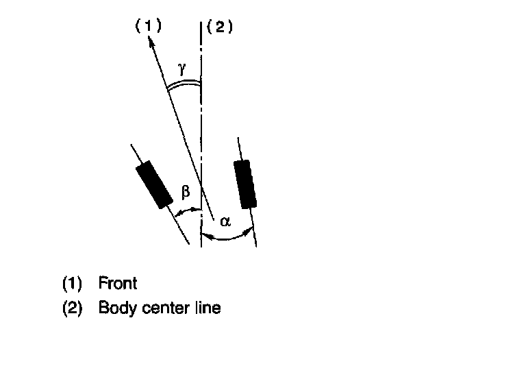 NOTE: Thrust angle refers to a mean value of left and right rear wheel toe angles in relation to the vehicle body center line. Vehicle is driven straight in the thrust angle direction while swinging in the oblique direction depending on the degree of the mean thrust angle.