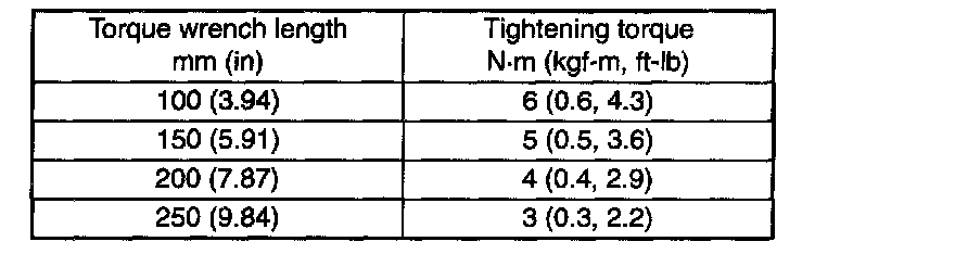 T1: 14 Nm (1.4 kgf-cm, 10.1 ft. lbs.)