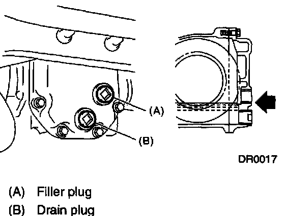 2. Check gear oil level is up to the bottom part of filler bolt. If the level is low, refill up to the bottom of filler bolt.