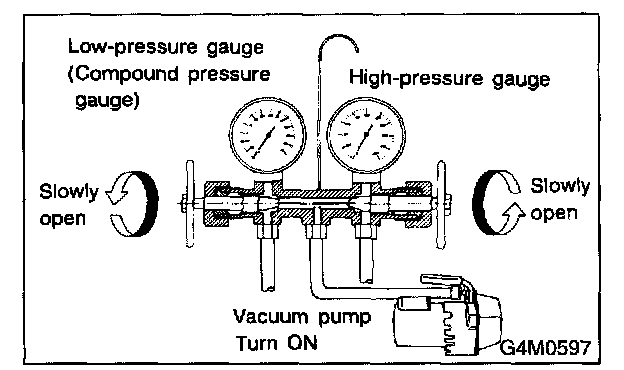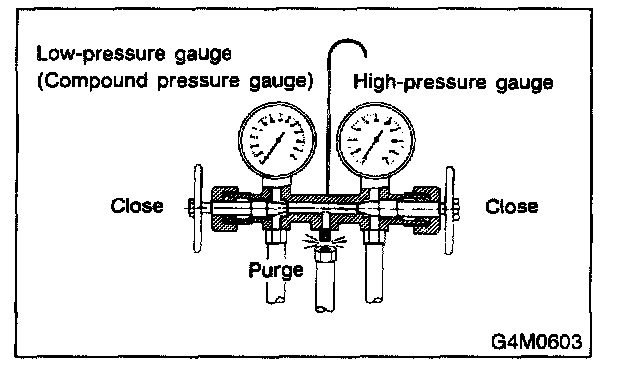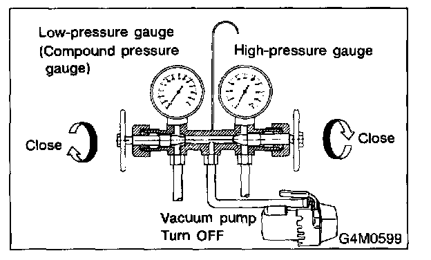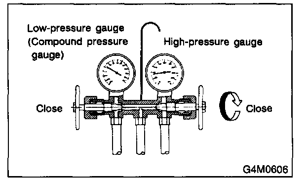 1. Close the valves on low-/high-pressure sides of the manifold gauge.