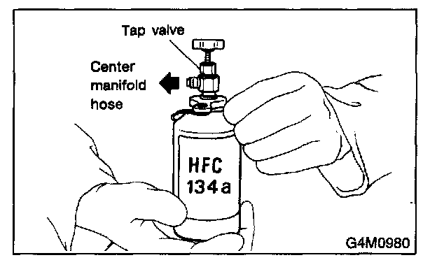 9. Following the can tap operation instructions, install it to the refrigerant can.