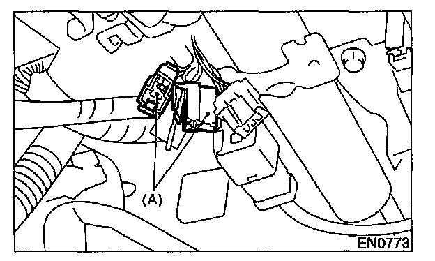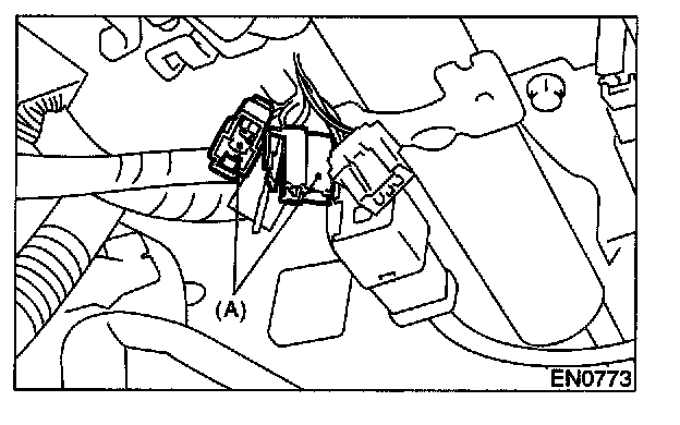 4. Connect the test mode connector (A) at the lower portion of instrument panel (on the driver's side), to the side of the center console box.