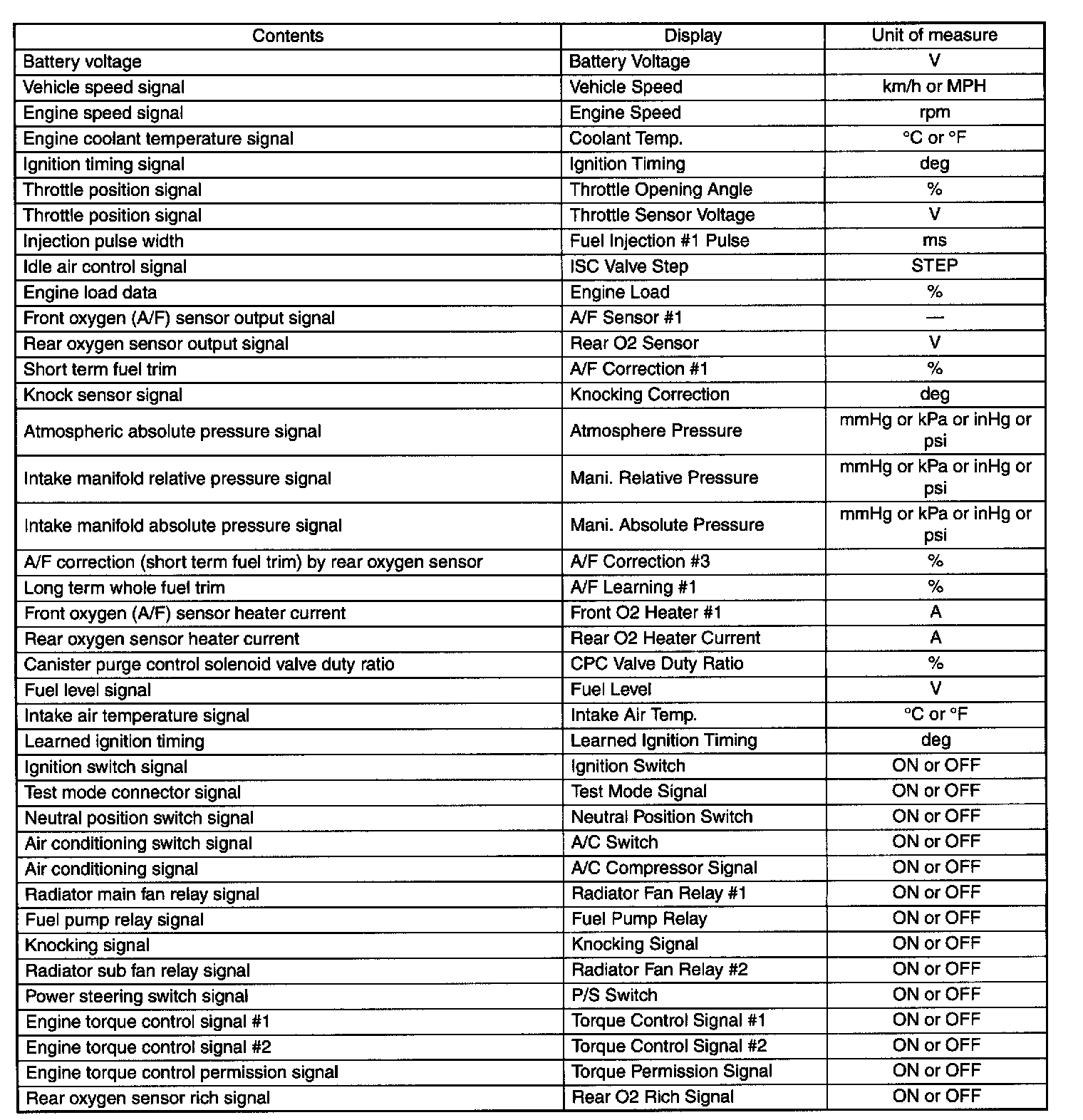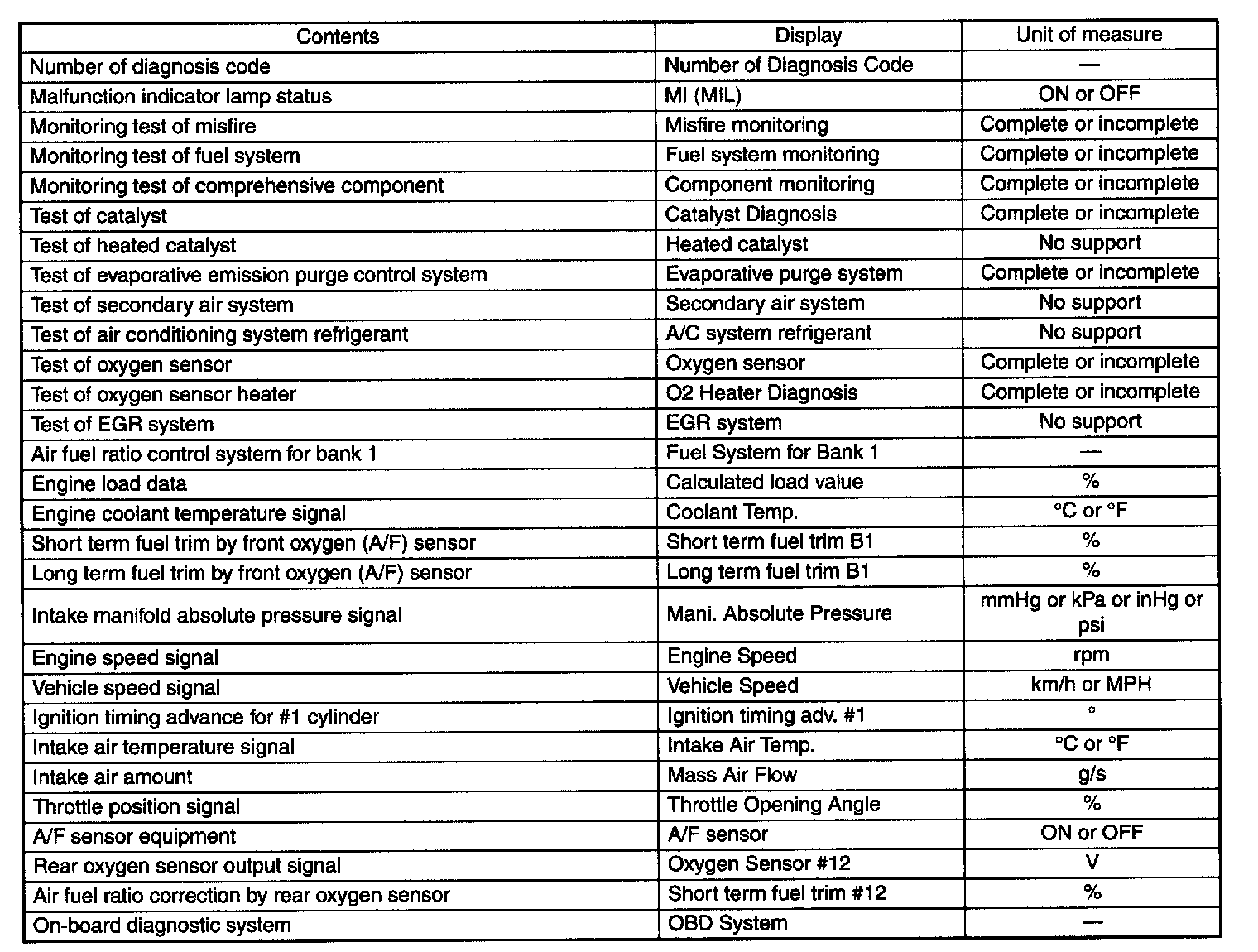 READ CURRENT DATA FOR ENGINE. (OBD MODE)