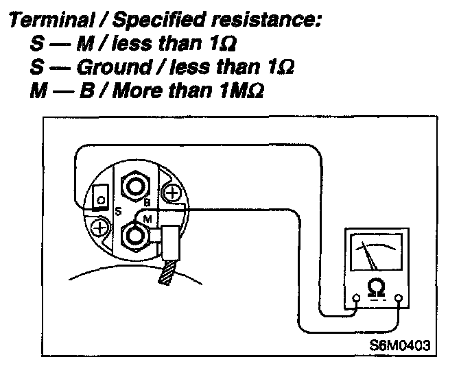 SWITCH ASSEMBLYBe sure there is continuity between terminals S and M, and between terminal S and ground. Use a circuit tester (set in "ohm").