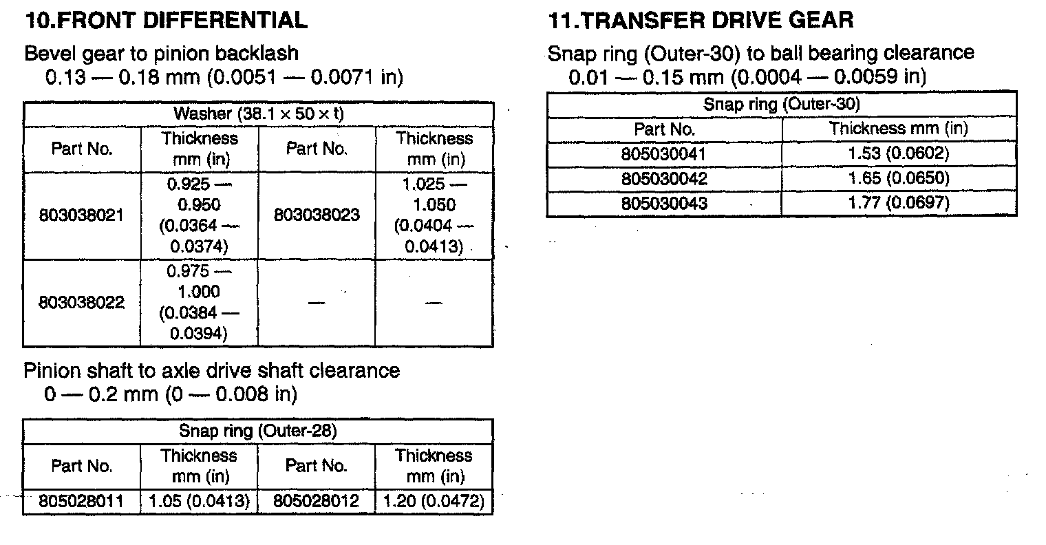 5-spd M/T, Transfer Case & Transmission Service/Overhaul Data: