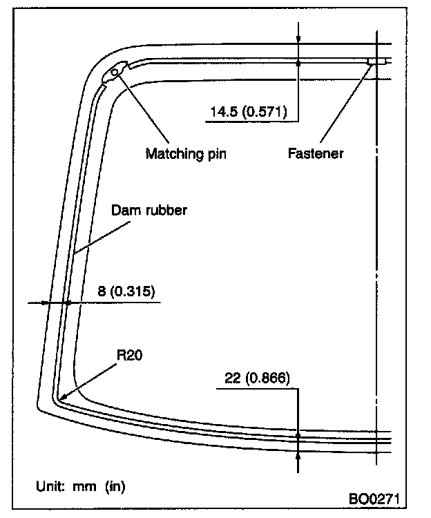 NOTE: For minimum drying time and time the vehicle must be left standing before driving after bonding, follow instructions or instruction manual from the adhesive manufacturer.