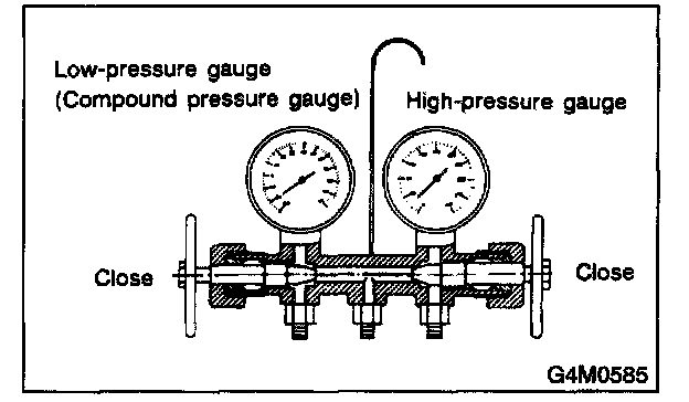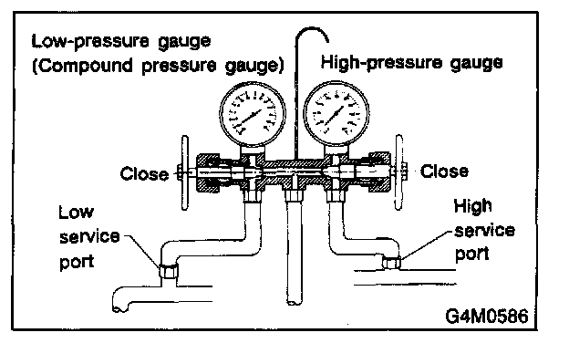 3. Close the valves on the low-/high-pressure sides of the manifold gauge set.