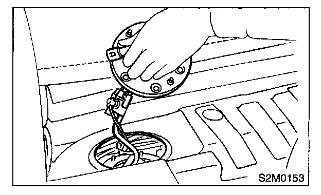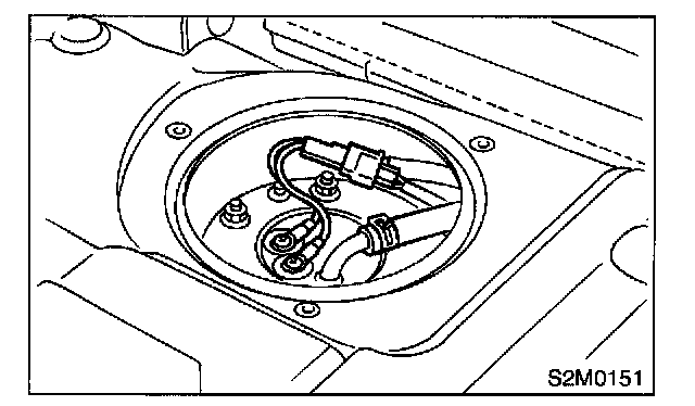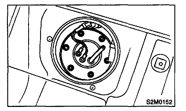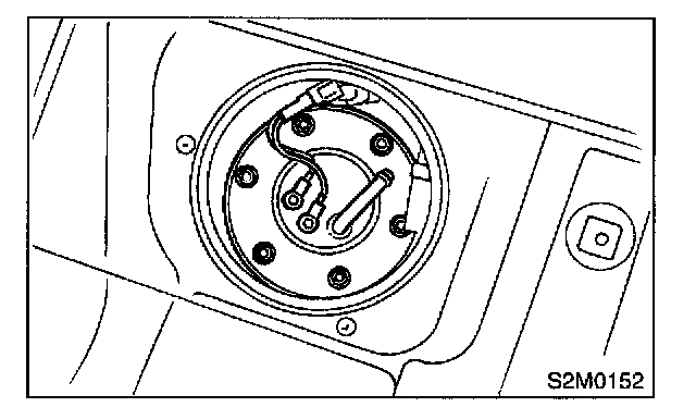 9. Remove the bolts which install the fuel sub meter unit on the fuel tank.