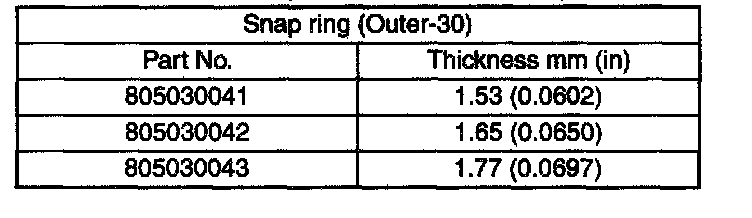 Snap ring (Outer-30) to ball bearing clearance 0.01 - 0.15 mm (0.0004 - 0.0059 inch)