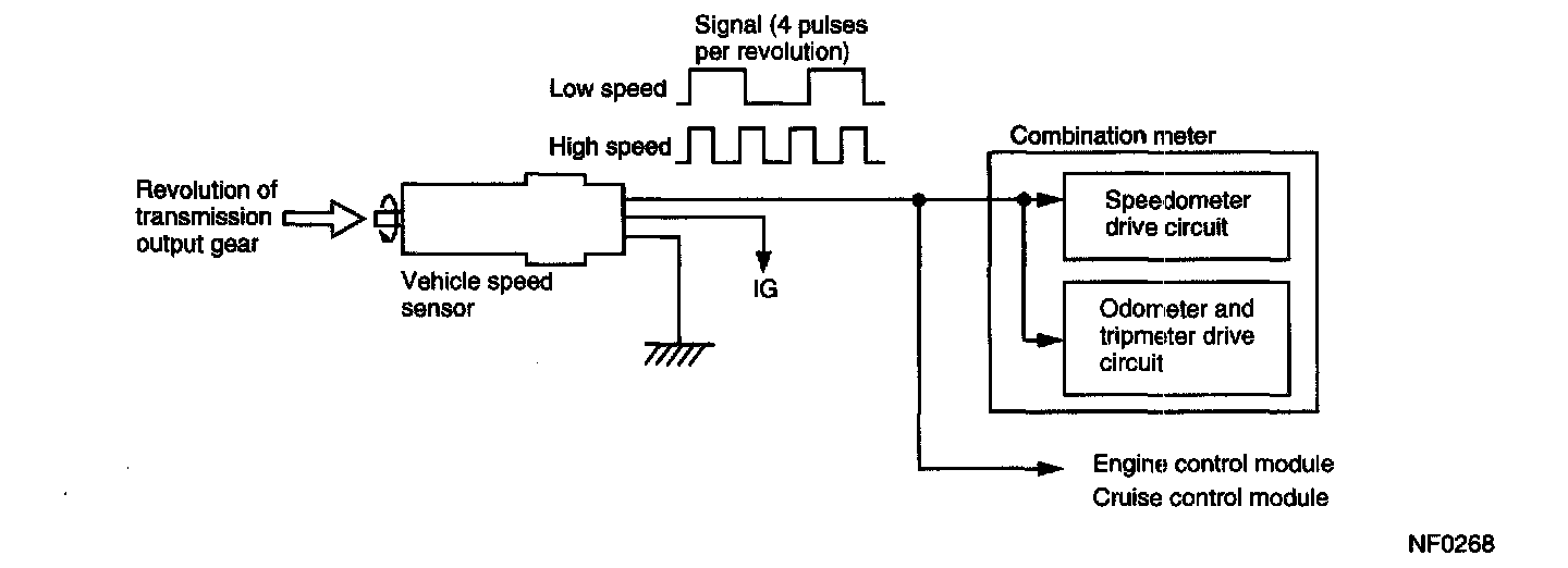 One turn of the driven key in the speed sensor sends 4 pulses to the combination meter, engine control module and cruise control module.
