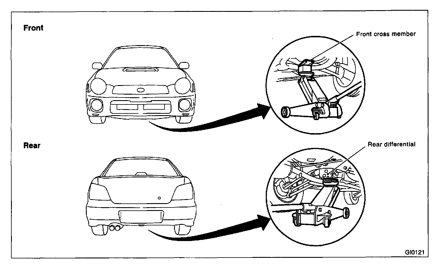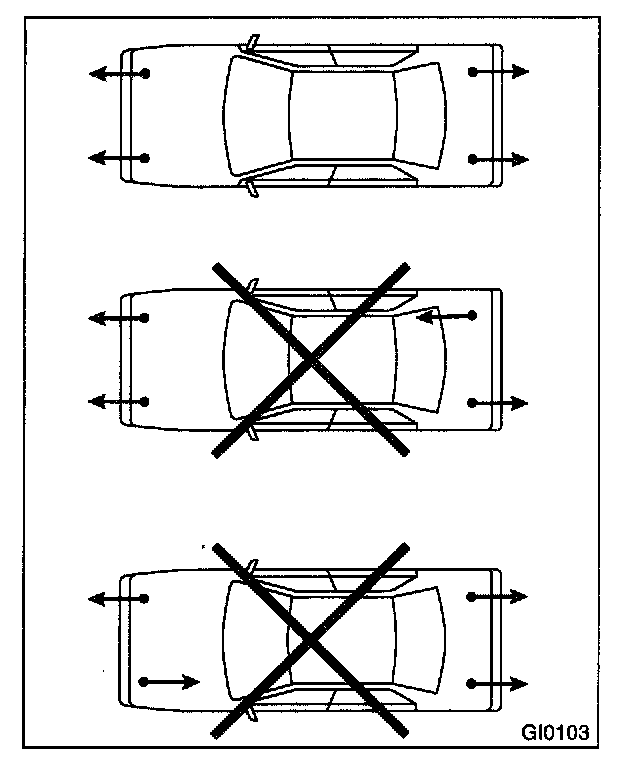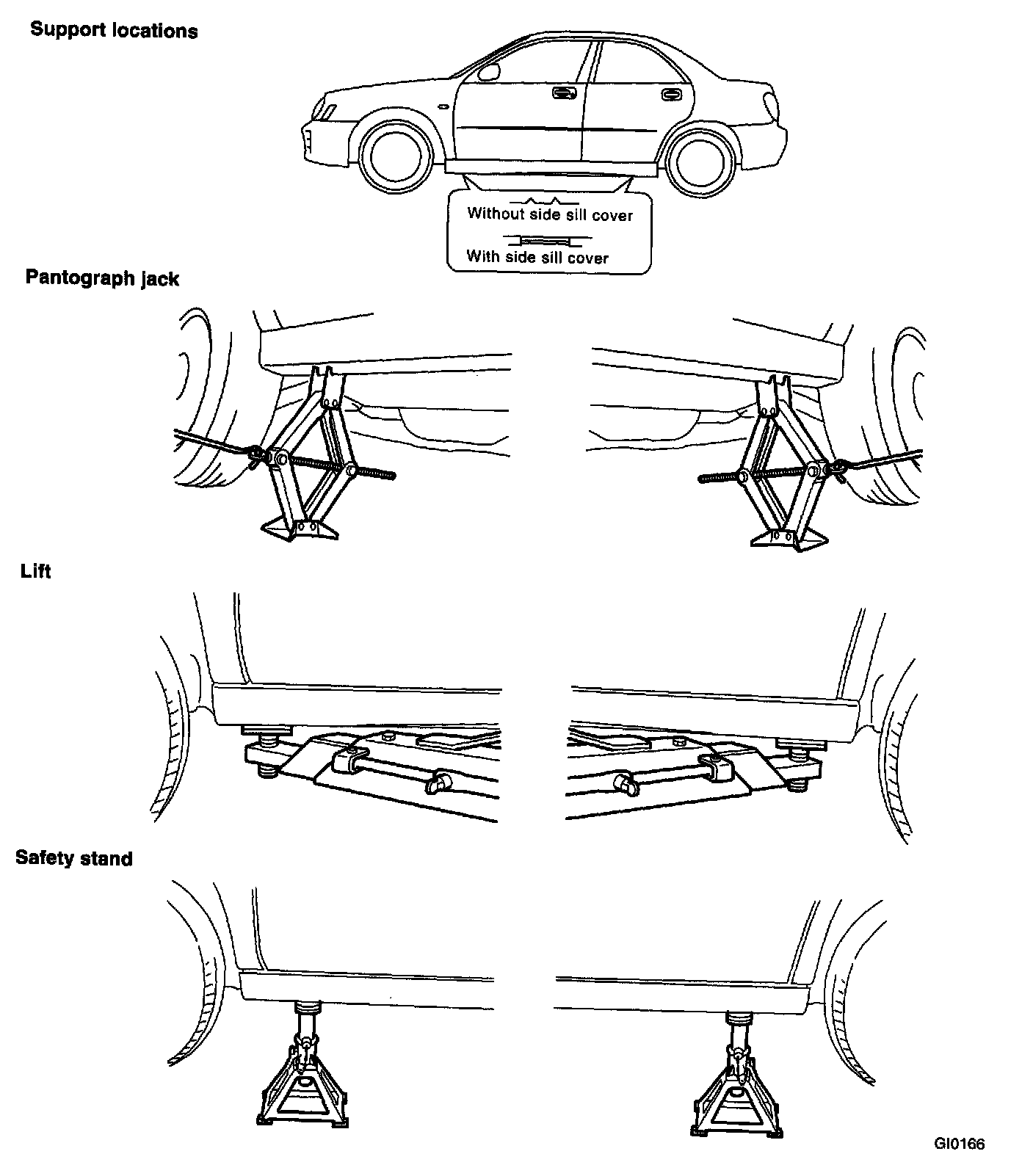 When using a lift or jack-ridged rack to raise a vehicle, always follow the instructions concerning jack-up points and weight limits to prevent the vehicle from falling, which could result in injury. Be especially careful to make sure the vehicle is balanced before raising it.