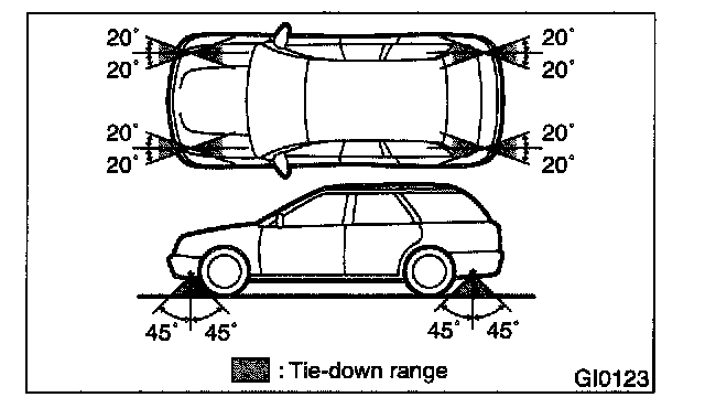 Tie downs are used when transporting vehicles and when using the chassis dynamo. Attach tie downs only to the specified points on the vehicle.