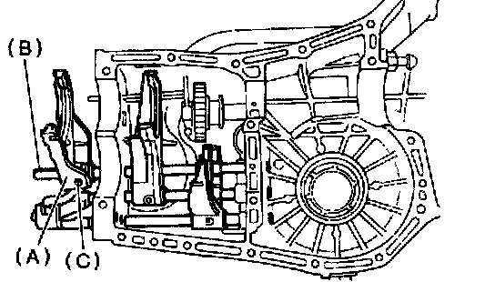 12. Remove outer snap ring, and pull out reverse shifter rod arm from reverse fork rod. Then take out ball, spring and interlock plunger from rod. And then remove rod.