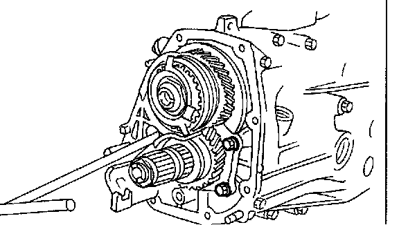 8. Remove drive pinion shaft assembly from left side transmission case.