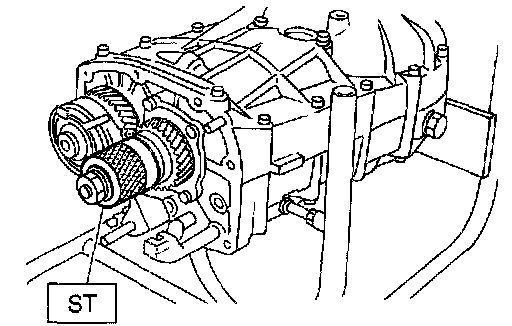 9. Place the transmission with case left side facing downward and put ST1 on bearing cup.