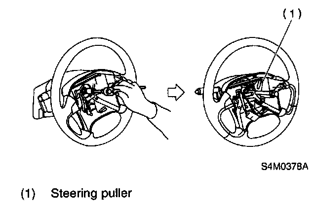 3. Remove steering wheel nut, then draw out steering wheel from shaft using steering puller.