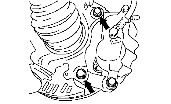 2. Remove caliper body from housing, and suspend it from strut using a wire.