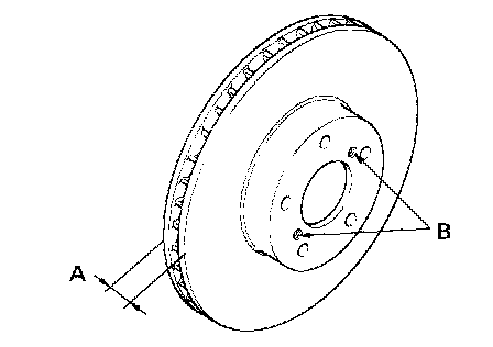 NOTE: If disc rotor seizes up within the hub, drive disc rotor out by installing an 8-mm bolt in holes B on the rotor.