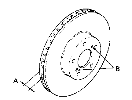 3. Measure disc rotor thickness. If thickness of disc rotor is outside the standard value, replace disc rotor.