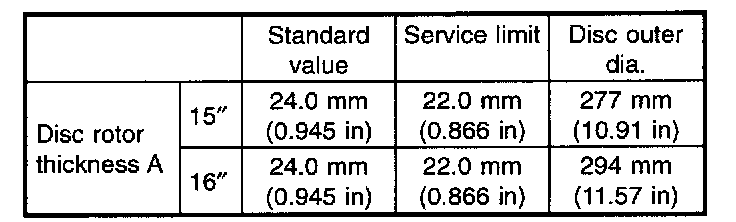 Disc rotor runout limit: 0.075 mm (0.0030 inch)