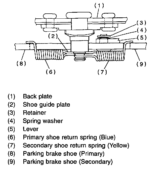 CAUTION: After replacing parking brake lining, be sure to drive vehicle for "break-in" purposes.