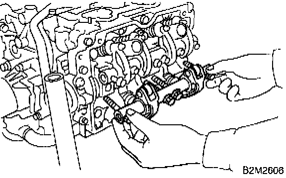 1) Remove bolts which secure rocker shaft.