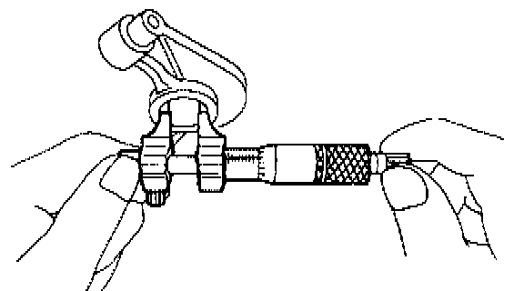 a) Measure inside diameter of valve rocker arm and outside diameter of valve rocker shaft, and determine the difference between the two (= oil clearance).