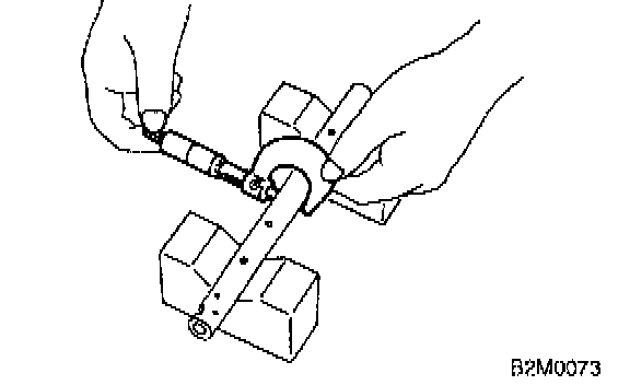 c) Measure inside diameter of rocker shaft support and outside diameter of valve rocker shaft, and determine the difference between the two oil clearance).