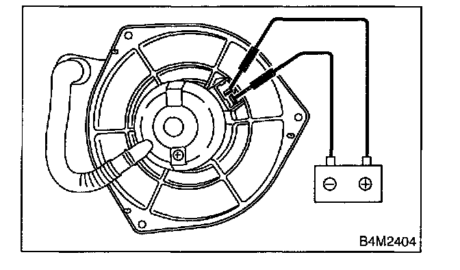 Connect motor connector terminal 1 from the battery to the positive (+) lead and terminal 2 to the negative (-) lead. Make sure the motor runs smoothly.