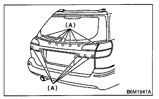 5. Remove nuts (A) and then remove rear finisher light from rear gate.