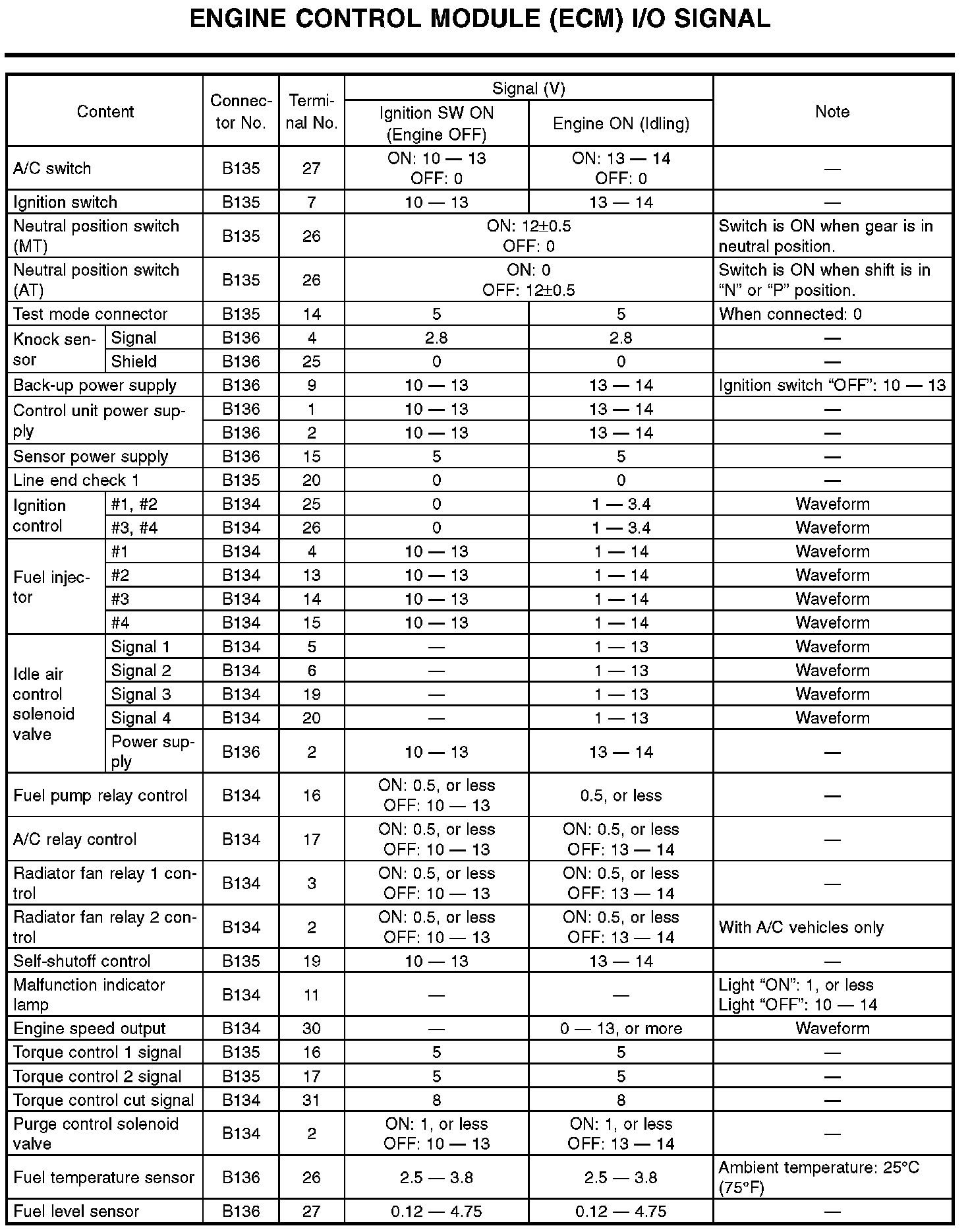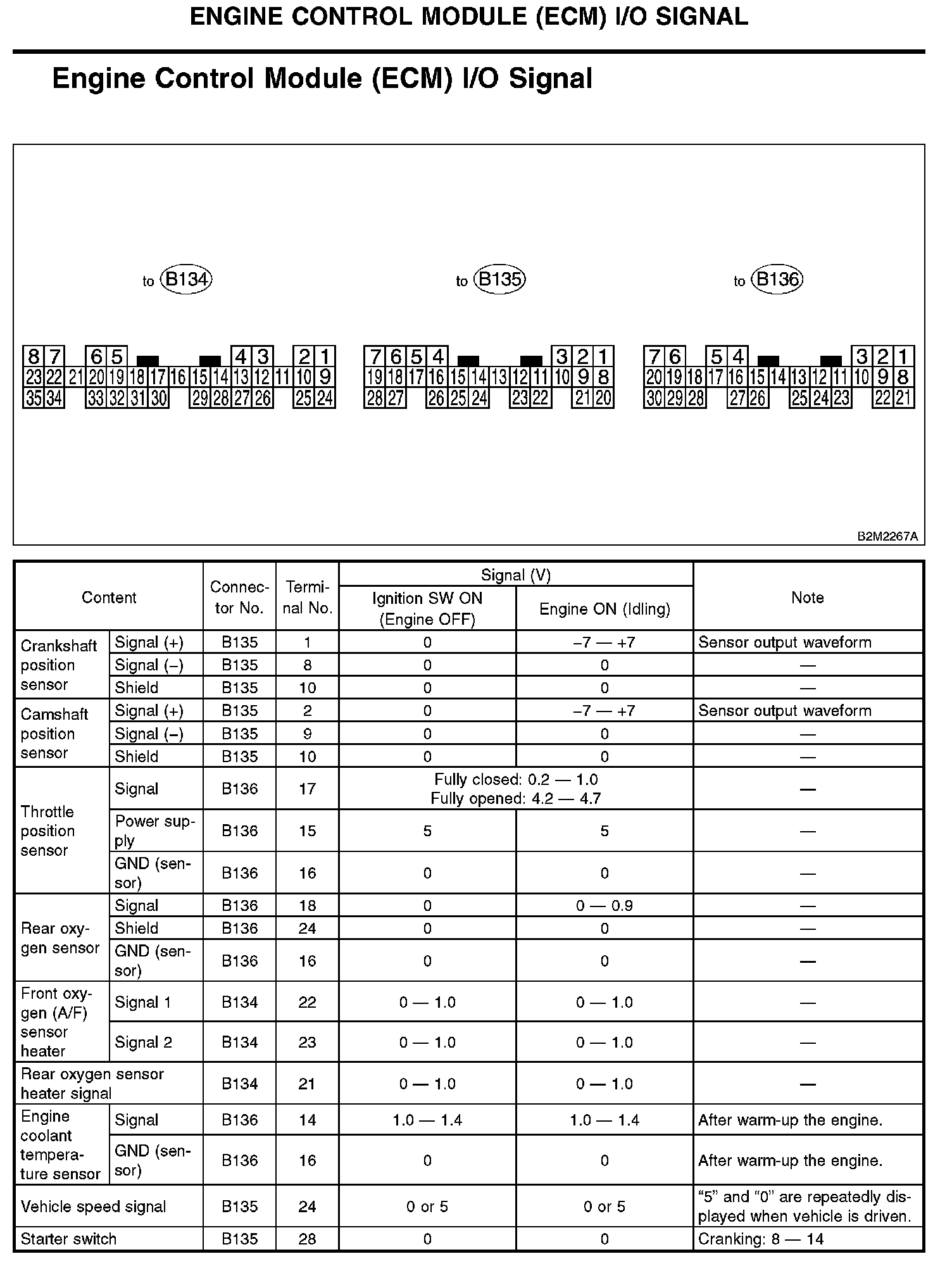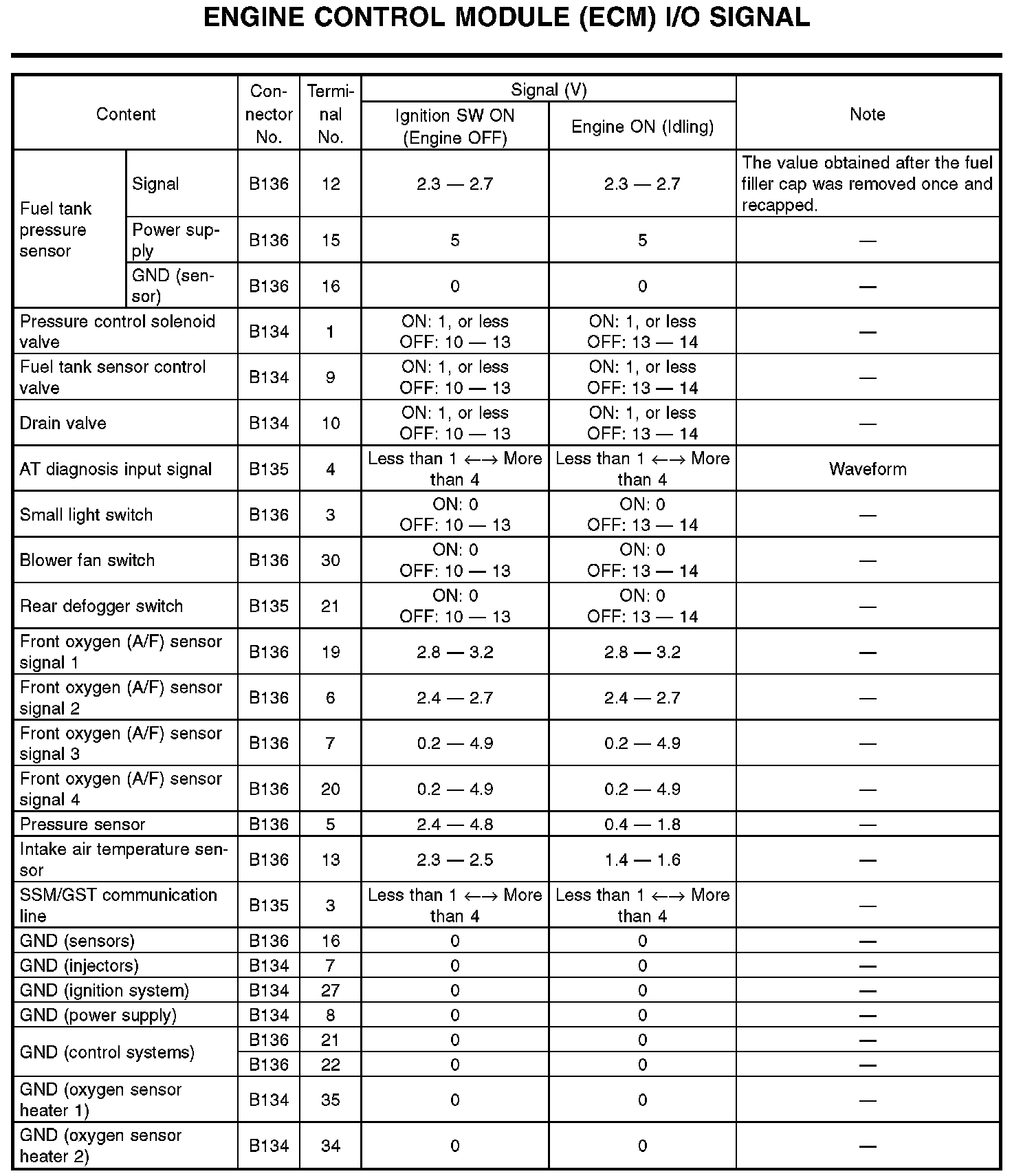 Pinout Values and Diagnostic Parameters