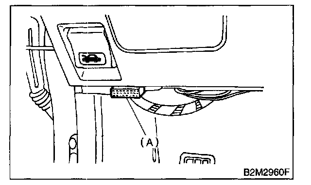 1. Connect Subaru Select Monitor to data link connector (A) located in the lower portion of the instrument panel (on the driver's side).