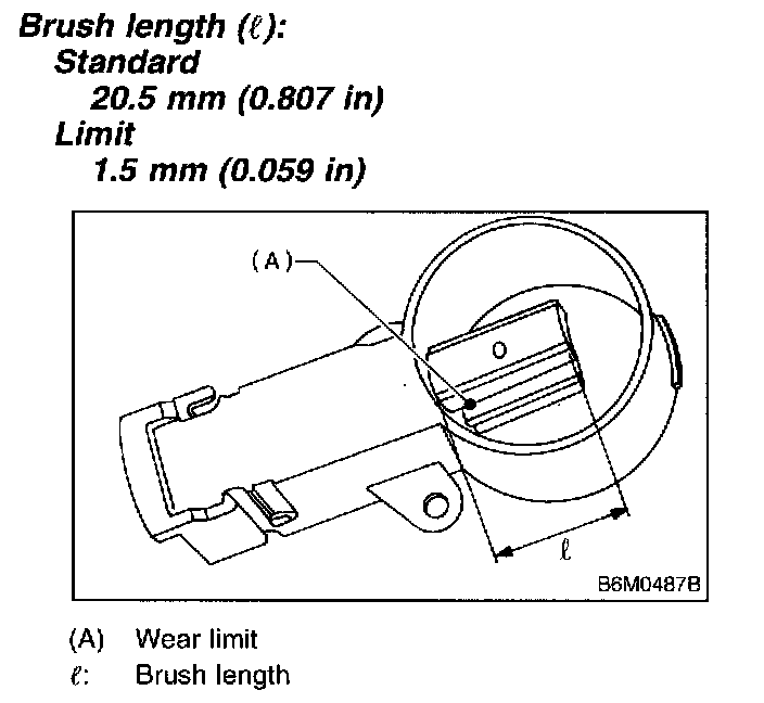 Measure brush length. If brush is worn, replace brush holder assembly.