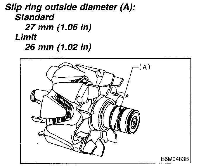 Measure slip ring outside diameter. If slip ring is worn, replace rotor.