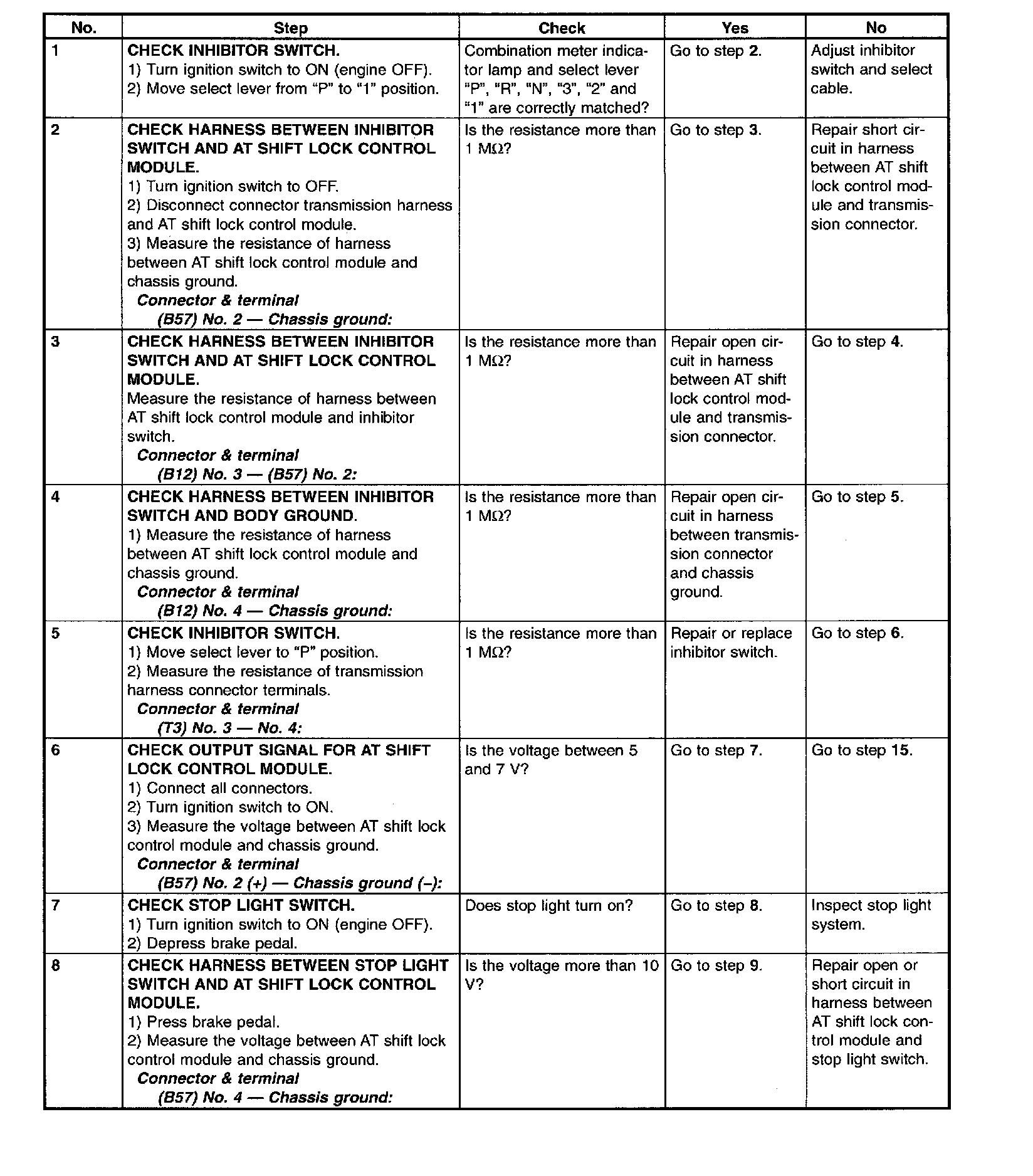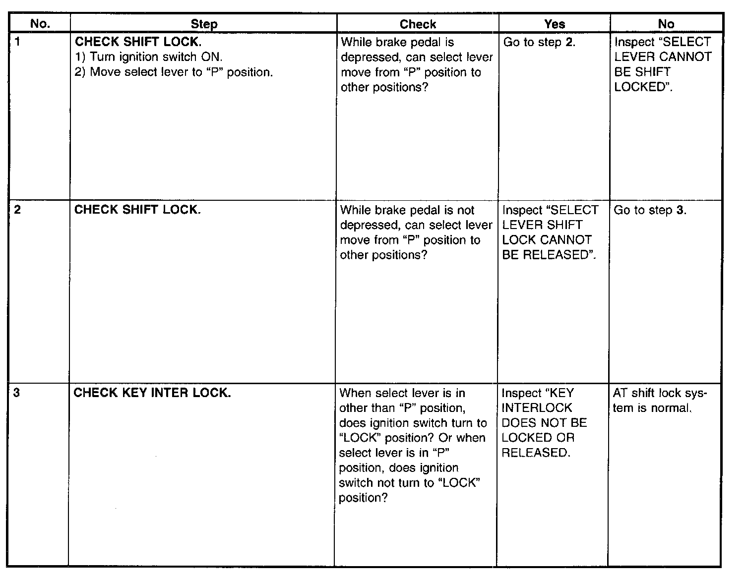 3. SELECT LEVER SHIFT LOCK CANNOT BE RELEASED