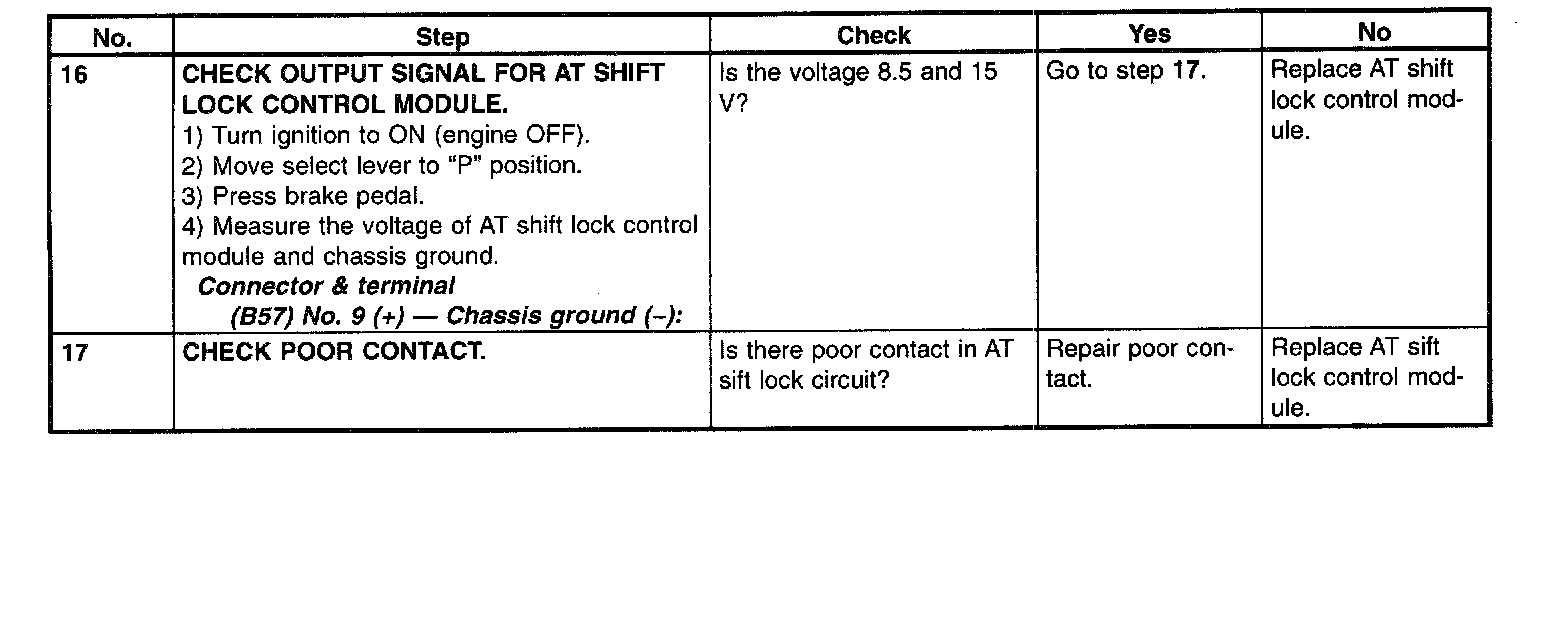 1. AT SHIFT LOCK CONTROL MODULE POWER SUPPLY AND GROUND LINE