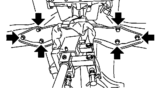 14. Remove the transmission rear crossmember bolts.