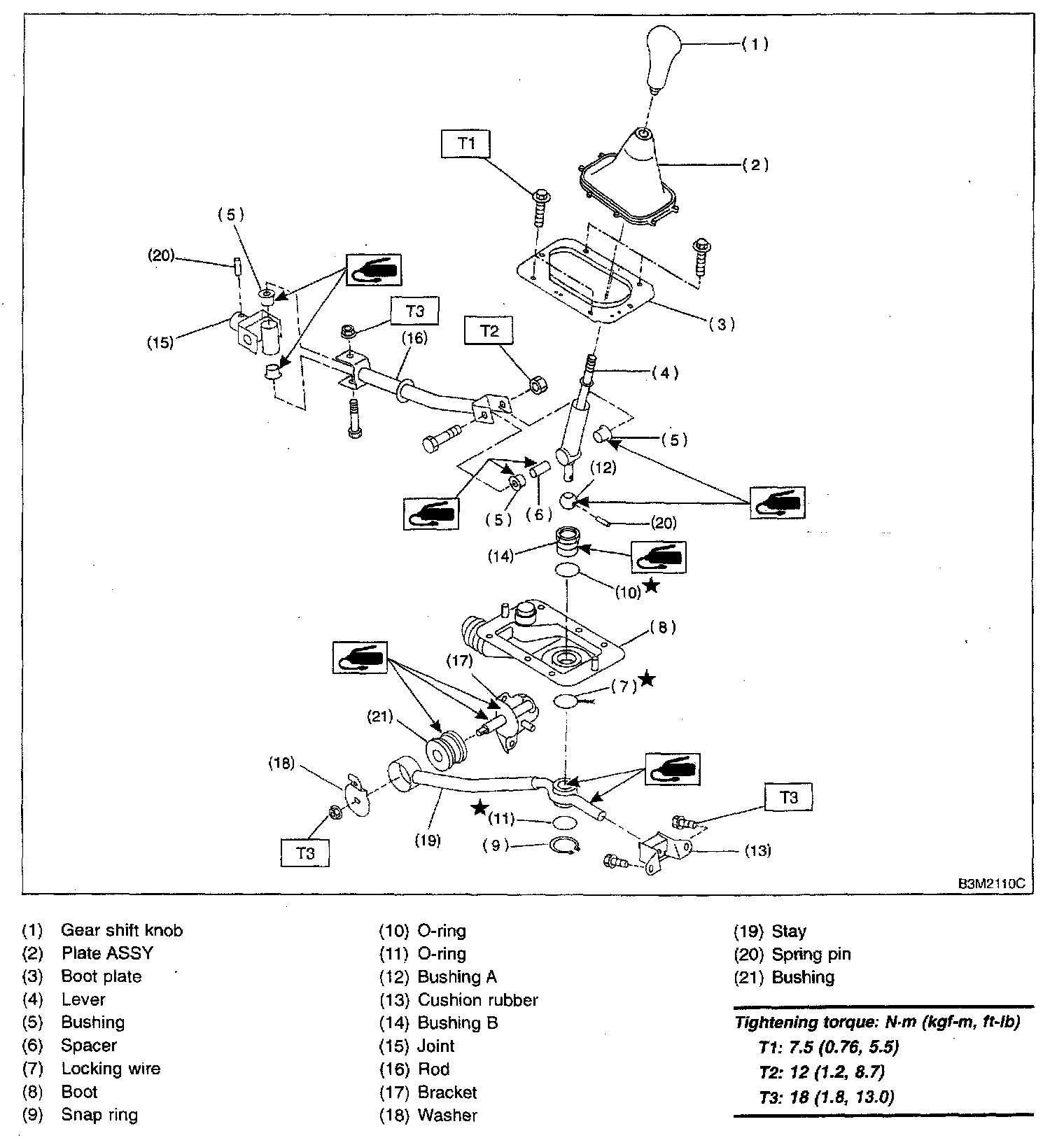 5-spd M/T, Transmission Control System (Gear Shift Lever):