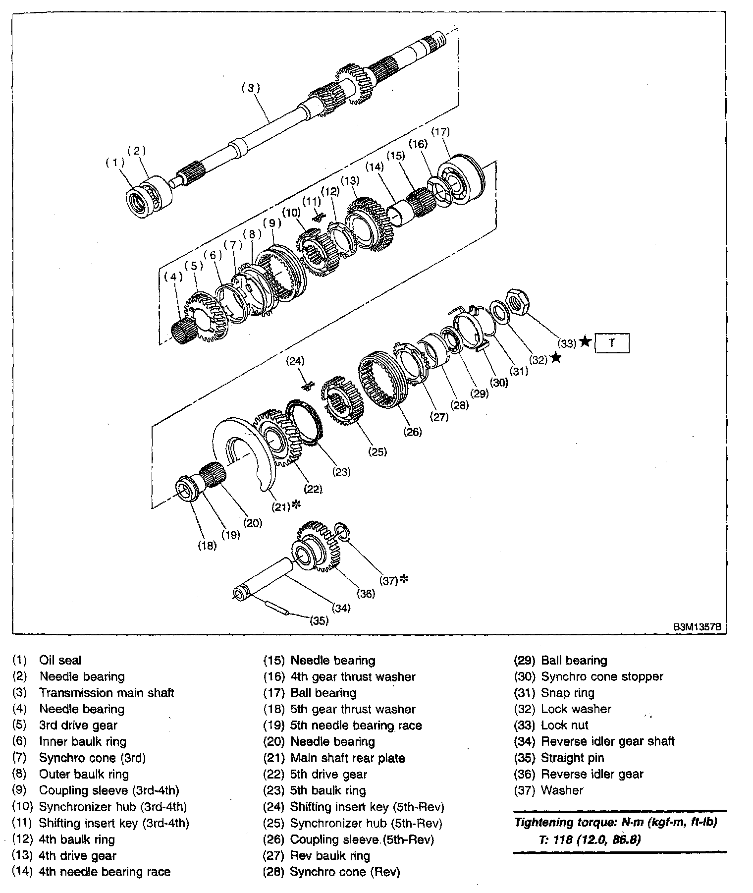 5-spd M/T, Transmission Main Shaft Assembly:
