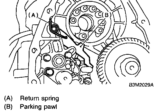 1. Install the parking pawl, shaft and return spring.