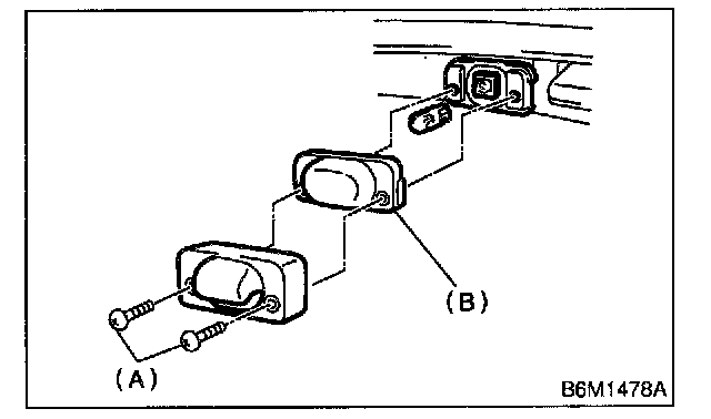 Remove license plate light mounting screw (A) and then remove the lens (B)