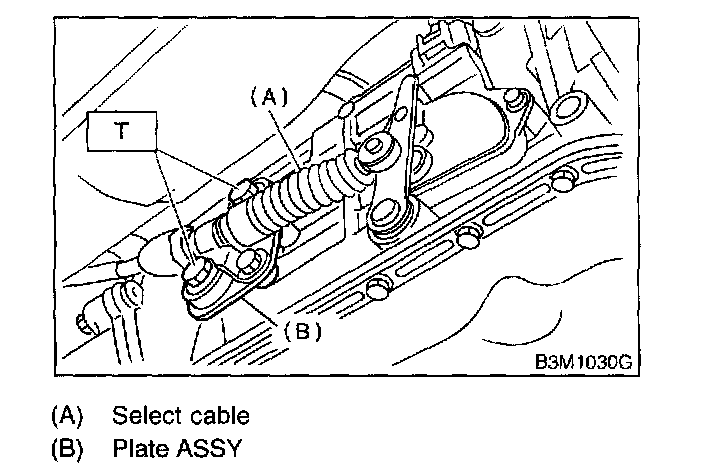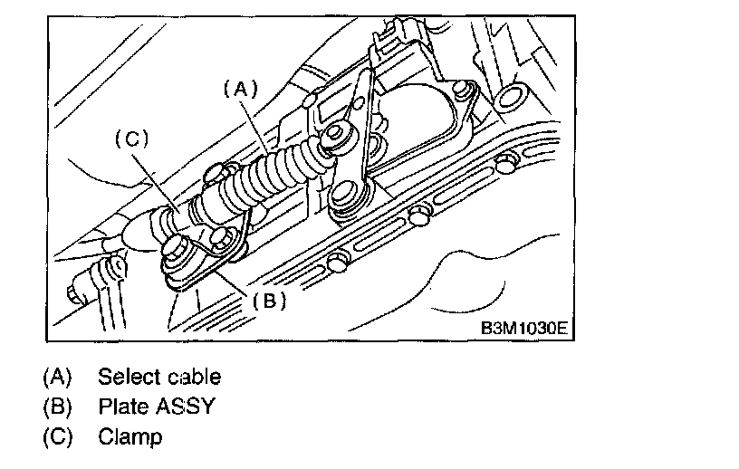 7. Disconnect cable from select lever and then remove cable bracket.